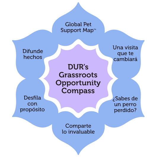 Al ofrecerles las oportunidades fáciles de implementar, en constante evolución y directas que se encuentran en nuestro Grassroots Opportunity Compass™, para involucrarse y marcar la diferencia en la vida de un perro menos afortunado.